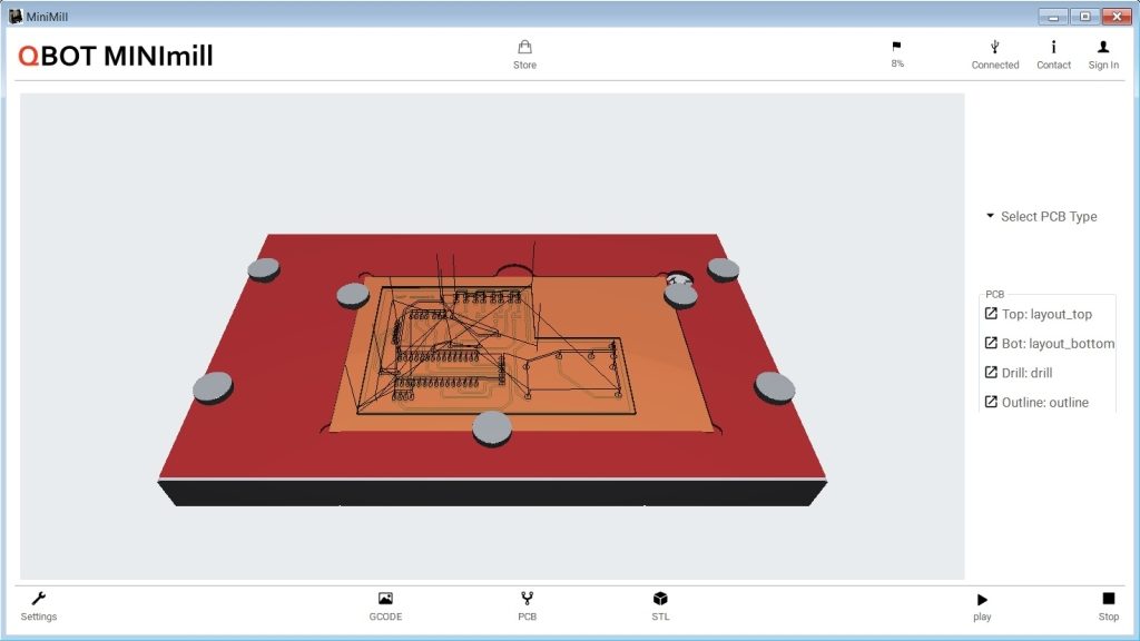 MINImill fertigt aus Ihren .gerber Dateien vollautomatisch 1 und 2 seitige Platinen.