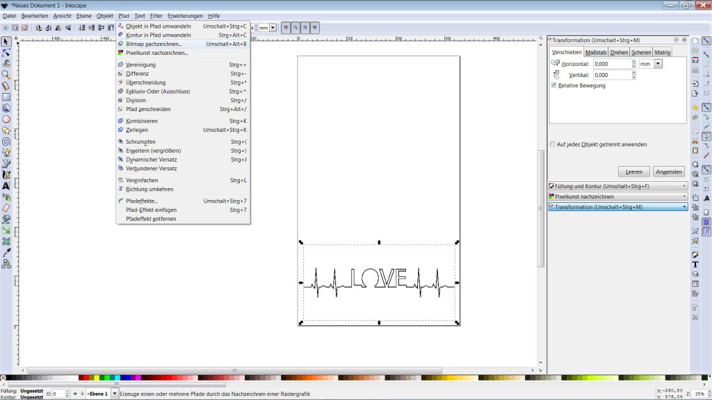 • Markieren Sie die Bilddatei und klicken Sie auf den Menüpunkt Bitmap nachzeichnen