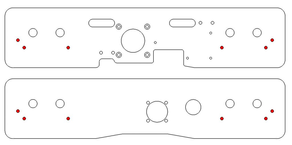 Am Ende dieses Schrittes sollte der Rahmen wie links abgebildet aussehen. Kontrollieren Sie insbesondere die Ausrichtung der vorderen und hinteren Y Platte, da diese nicht symmetrisch ist.