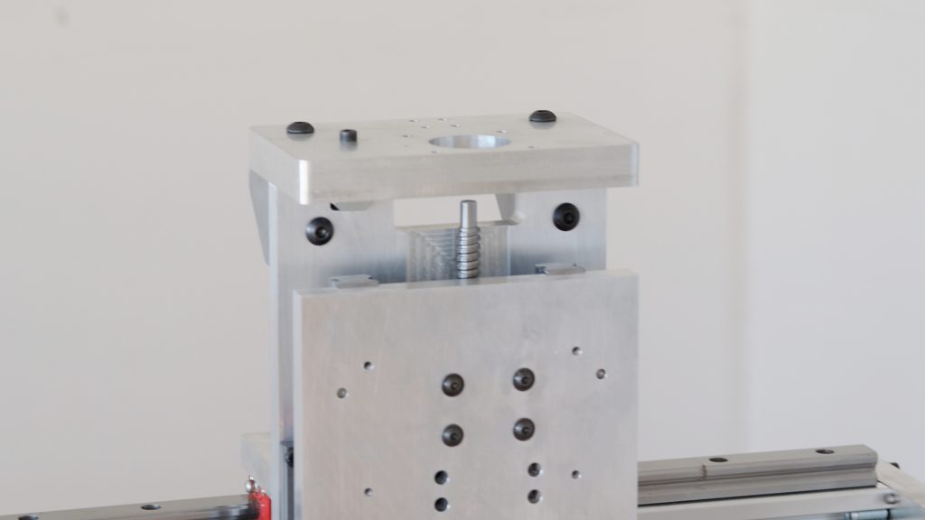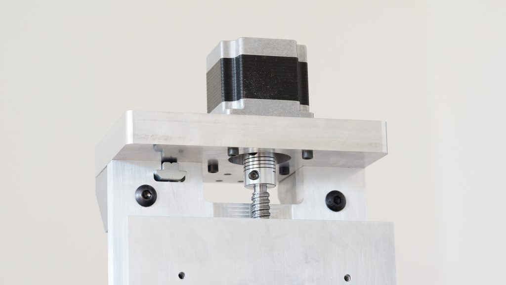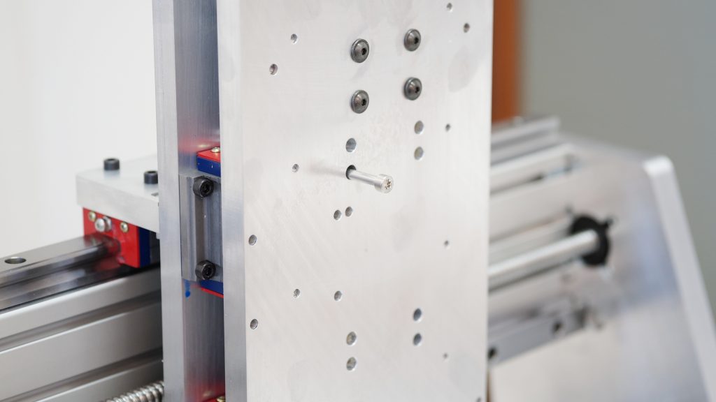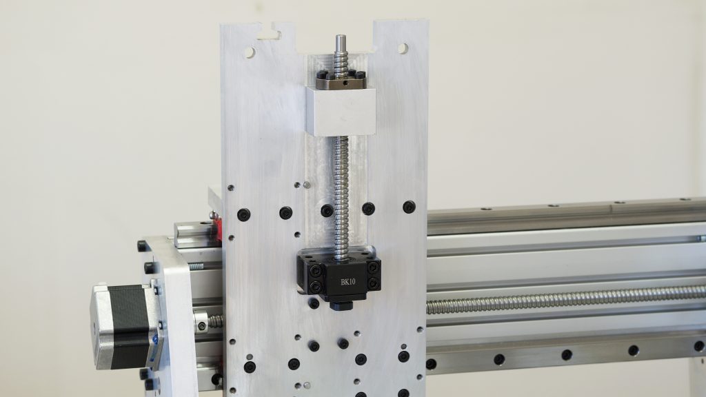 Im folgenden Schritt wird die Z Achse eingebaut. Kontrollieren Sie bitte die Ausrichtung der X Achse und der Kugelumlaufspindel der X Achse bevor Sie die Z Achse montieren, da die Schrauben der X Achse später nicht mehr erreichbar sind.
