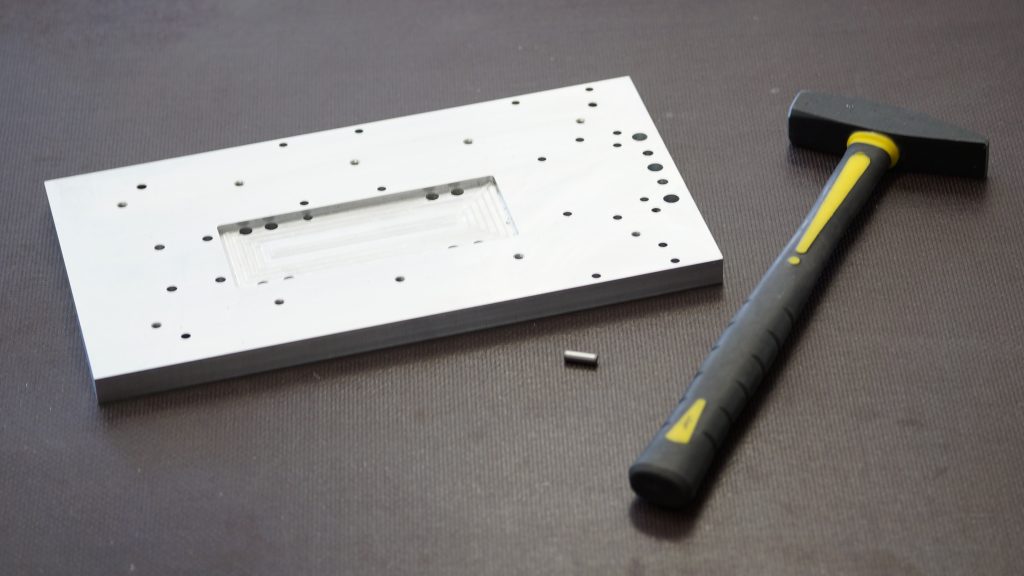 Die Abdeckkappen werden mit einem Gummihammer oder einem Kunststoff/Holzzwischenstück une einem Hammer eingeschlagen. Beschädigen Sie dabei nicht die Profilschine. Wir legen die Abdeckkappen auf und schlagen diese mit einer 3mm dicken Kunststoffplatte als Zwischenstück und einem Hammer vorsichtig ein. Sollten nach dem Einschlagen feine Kunststoffreste überstehen, so schaben wir diese mit der Kunststoffplatte ab.