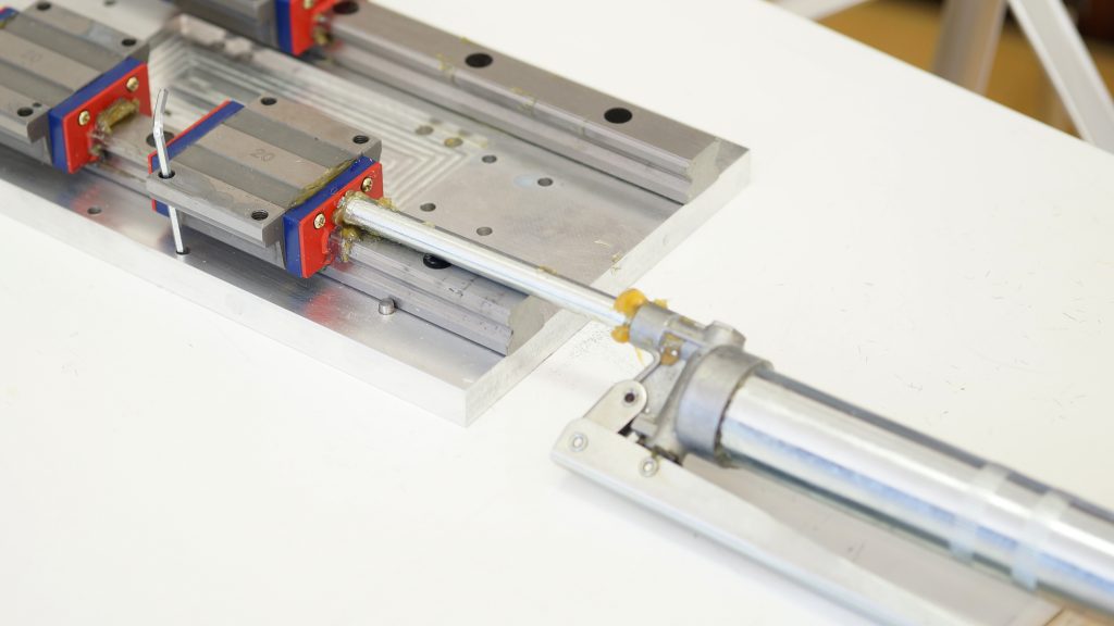 Für eine optimale Lebensdauer empfehlen wir die Wagen vor Inbetriebnahme zu schmieren. Wir empfehlen die Wagen der Z Achse vor der Endmontage zu schmieren, da diese je nach Schmierhilfe nicht so leicht zugänglich sind – als Schmiermittel eignet sich Lagerfett (wir verwenden Lagermeister EP2)