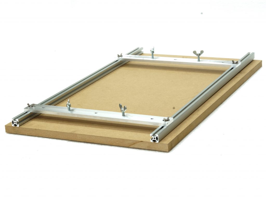Für Gravuren oder Fräsarbeiten können Sie die Materialplatten direkt spannen. Wir empfehlen aber die Materialplatten auf eine Opferplatte (Karton, MDF) mit doppelsseitigem Klebeband zu Kleben und beide Platten gemeinsam zu spannen. Somit bleibt die MDF Aufspannplatte auch bei Durchfräsungen wie neu und Werkstücke sind sicher während dem gesamten Fräsvorgang gespannt.