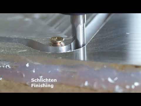 The second part of the video shows the helical plunge process. The helical plunge speed is identical with the full slot cutting feed rate. However due to the plunge ramp the actual load on the end mill is greatly reduced. We recommend this operation for advanced CAM programs like Fusion 360, FreeCAD or similar CAM tools.