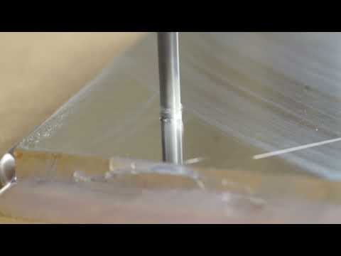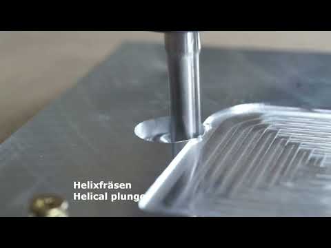 The video shows the difference between an axial plunge and a helical plunge into aluminum.